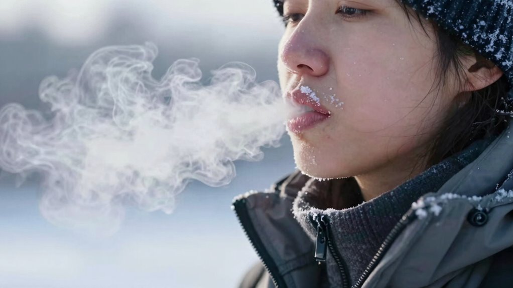 On the other hand, practicing diaphragmatic breathing helps you take slow, deep breaths that engage your diaphragm fully. This technique allows you to maximize oxygen intake while keeping your breathing calm and controlled. When you breathe deeply through your nose, your body warms and humidifies the air before it reaches your lungs, which helps maintain your core temperature and prevents cold-related stress. Diaphragmatic breathing also promotes relaxation, reducing stress hormones that can cause vasoconstriction—your body’s way of conserving heat but one that can backfire during cold exposure by reducing blood flow to extremities. By breathing diaphragmatically, you support a steady oxygen supply, which helps your body generate heat more efficiently and sustain warmth longer. Developing proper breathing techniques can also enhance your overall thermoregulation, making cold exposure more manageable. Many beginners naturally default to mouth breathing, especially during physical activity or cold exposure, because it feels easier or more instinctive. However, over time, training yourself to breathe through your nose and engage your diaphragm can remarkably enhance your cold resilience. It’s not just about taking in more air; it’s about optimizing each breath to support your body’s thermoregulatory processes. When you consciously focus on diaphragmatic breathing, you also help manage your overall stress levels, which is indispensable because stress worsens cold sensitivity. Remember, your breathing pattern directly influences how well your body adapts to cold environments, so making a habit of nasal, diaphragmatic breathing can be a game-changer for staying warm and comfortable during exposure.