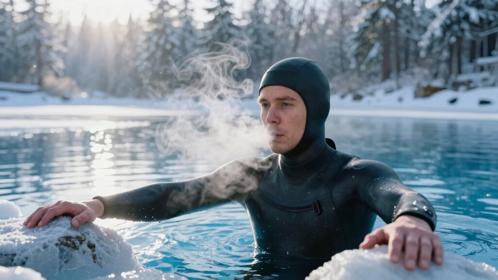 Preparing your body before a cold plunge can markedly enhance your comfort and safety. One effective way to do this is by focusing on your breathing techniques and mental preparation. When you take the time to regulate your breath and clear your mind beforehand, you set the stage for a smoother, less shocking experience once you step into the cold water. Breathing techniques, in particular, are powerful tools that can help you stay calm and control your physiological response to the cold. Instead of panting or gasping when you first enter, you’ll have practiced deliberate, deep breaths that slow your heart rate and reduce panic. Try inhaling slowly through your nose for a count of four, holding briefly, then exhaling fully through your mouth for a count of four. Repeat this cycle a few times to create a sense of calm and stability. This controlled breathing helps prevent hyperventilation and minimizes the initial shock, making the experience much more manageable. Additionally, establishing a mindful routine can help reinforce your mental resilience over time. Mental preparation is equally vital. Before you immerse yourself, take a moment to set a clear intention—whether it’s building resilience, improving circulation, or simply challenging yourself. Visualize the process of stepping into the water and staying composed. This mental rehearsal primes your mind to stay focused and positive, reducing the likelihood of fear or hesitation taking over when the cold hits. You might also remind yourself that the discomfort is temporary and that your body is capable of adapting. Developing a mental routine—such as repeating a mantra or focusing on your breath—can help you detach from the impulse to withdraw and instead embrace the experience. The more you practice mental preparation, the more you’ll find yourself able to stay present and grounded, even when faced with the initial shock of the cold.