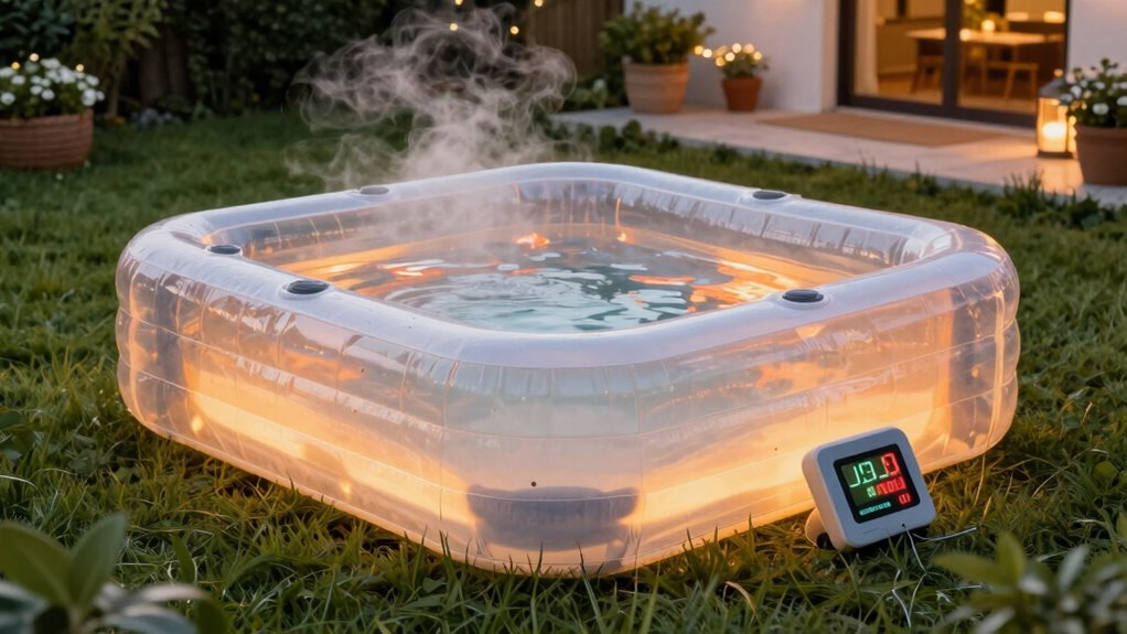 By understanding these three variables—temperature, usage habits, and insulation—you hold the keys to taming your inflatable hot tub’s energy costs. Think of it as steering a ship through calm waters; with a steady hand and smart choices, you can navigate toward savings. When you master these factors, your hot tub becomes a cozy oasis without draining your wallet. Plunge in with confidence, and watch your energy bills shrink like a balloon deflating peacefully.