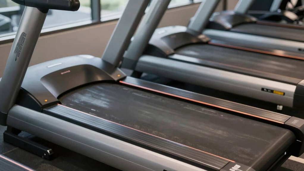 If you’re looking to boost your workout intensity, a curved treadmill can be an excellent choice. Its design demands more effort, engaging your muscles more effectively. This increased effort can push your cardiovascular limits and improve overall endurance. Plus, the dynamic nature of curved treadmills encourages better running posture, reducing injury risk and optimizing performance. To maintain consistent intensity, you need to pay attention to treadmill maintenance, ensuring the surface remains smooth and responsive. Using a curved treadmill challenges you to work harder without increasing speed, making workouts more efficient.