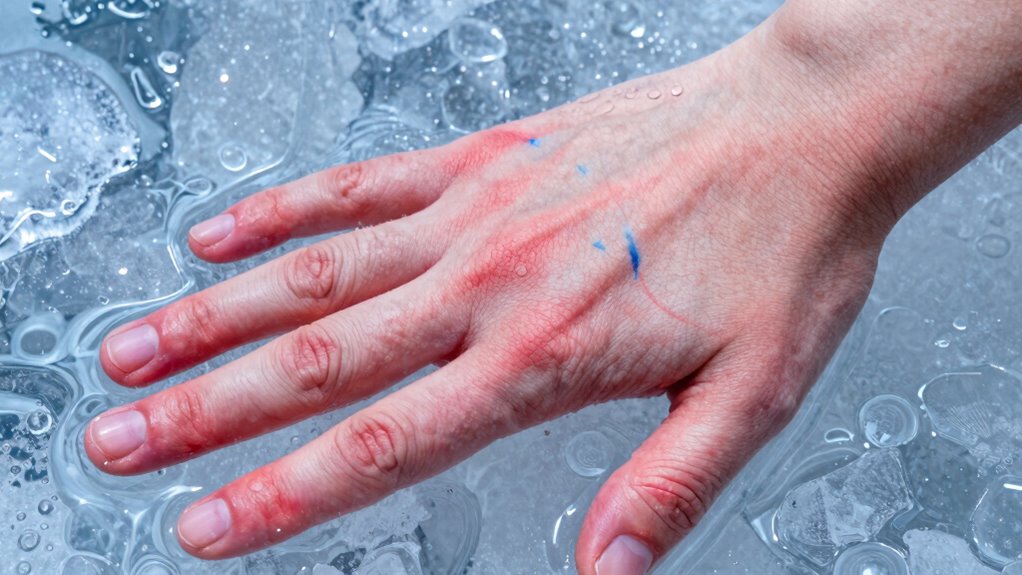 You should beware because vasoconstriction mechanisms, triggered by cold, can indeed lead to frostbite risk. When blood vessels constrict, blood flow slows, depriving tissues of essential warmth and nutrients. This drastic decrease can cause tissue damage, increasing frostbite chances. So, in chilly conditions, vasoconstriction’s protective purpose can turn perilous, risking frostbite if you don’t protect exposed skin. Stay warm to prevent this dangerous damage.
