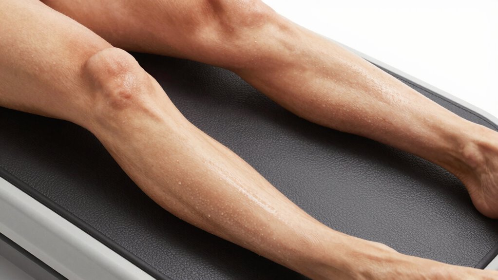 Because of their rapid oscillations, vibration plates activate your muscles almost instantly when you stand or perform exercises on them. This quick activation results from the body’s sensory response to the vibrations, which stimulates nerve endings and triggers muscle contractions. As a result, your muscles engage more efficiently, even without conscious effort. Additionally, the vibrations can enhance blood flow and promote muscle recovery through increased circulation recovery benefits. This mechanism explains why vibration plates feel so intense and fast-acting. Your nervous system reacts swiftly to the vibrations, activating muscles in a way that traditional workouts can’t replicate as quickly, partly due to the neurological response. Furthermore, the rapid muscle activation is supported by the body’s natural reflexes, which respond to external stimuli like vibrations to protect and optimize muscle function. The muscle recruitment process during vibration therapy is also more comprehensive, engaging muscle groups that might be less activated during conventional exercises. Incorporating adaptive resistance through vibrations can further intensify muscle engagement and effectiveness during use.