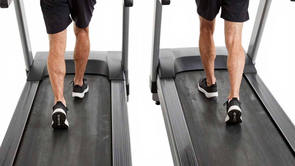 Short treadmill belts force your feet to stay close together, making proper foot placement difficult. When your stride alignment is compromised, you tend to overcompensate, leading to awkward movements. Limited space means you can’t naturally land your feet in the ideal position, which can cause you to shuffle or overreach with each step. This improper foot placement not only feels uncomfortable but also disrupts your running rhythm. Proper biomechanics play a crucial role in maintaining comfort and efficiency during your run. When your movement patterns are disrupted, it can also negatively impact your overall muscle engagement, leading to less effective workouts. Additionally, restricted stride length can increase the risk of injury due to improper load distribution on your muscles and joints. Incorporating adaptive training techniques can help mitigate some of these issues by encouraging better form despite limited space. Recognizing how foot strike patterns influence your movement can further improve your running experience on short belts.