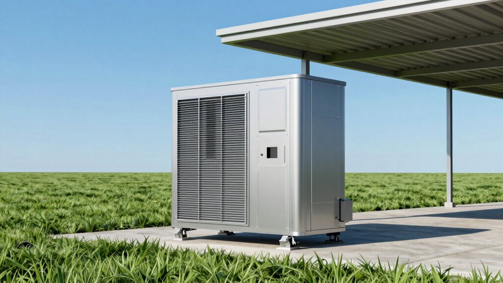 Did you know outdoor chillers can lose up to 30% efficiency if not properly placed? Outdoor placement definitely affects long-term performance if ventilation requirements aren’t met or shading strategies aren’t used. Make certain your chiller is in a well-ventilated spot and shaded from direct sunlight to prevent overheating. Proper placement helps your unit run smoothly, saves energy, and extends its lifespan. So, choose a shaded, ventilated location for peak performance.