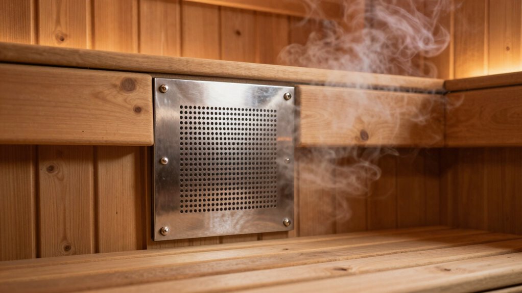 Installing sauna ventilation might seem intimidating, but breaking it down into simple steps makes the process manageable. Start by choosing the right location for intake and exhaust vents, considering both humidity control and aesthetic design. Proper placement of vents is essential to ensure effective airflow and comfort. Next, mark where the vents will go on your sauna walls, ensuring proper airflow. Cut openings carefully, using appropriate tools. Connect vents securely, sealing gaps to prevent air leaks. Remember, proper installation helps maintain ideal humidity levels and keeps the environment comfortable. Keep your design sleek by hiding vents behind panels or inside corners. Understanding airflow principles can help you optimize your ventilation system for better efficiency. Additionally, paying attention to safety principles can ensure your sauna environment remains in optimal condition for your wellbeing. Incorporating proper ventilation design practices is crucial to prevent mold and ensure long-term durability. With these steps, you’ll create a functional, visually appealing ventilation setup that enhances your sauna experience.