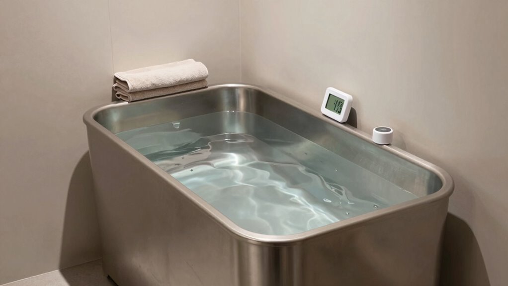 Think of portable solutions as your personal icebreaker—compact, versatile, and ready to adapt. For limited spaces, a space-saving design becomes your secret weapon, fitting snugly into any corner or cornerless nook. These options let you enjoy cold plunges without sacrificing room, making wellness accessible wherever you go. Embrace the freedom of mobility, knowing your cold plunge can be as flexible as your lifestyle demands.