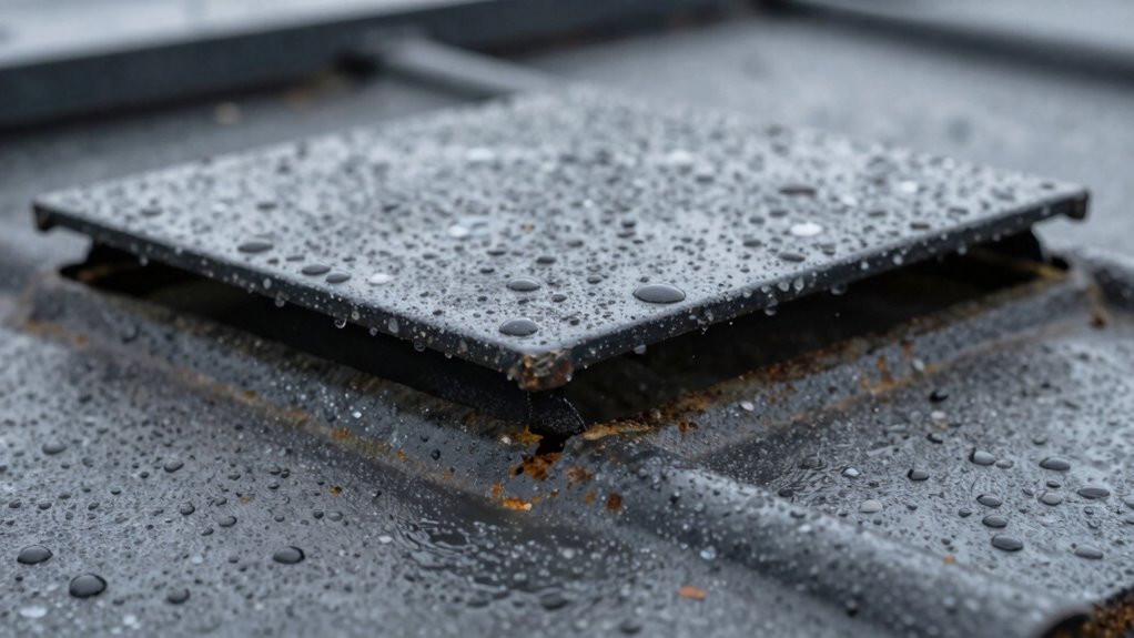 When cover gaps exist on your roof, water can easily find its way inside your home. Small gaps allow rainwater to seep under shingles or roofing materials, especially during storms. Poor roof ventilation can worsen the problem by trapping moisture and increasing the risk of leaks. Gutter maintenance is vital because clogged or damaged gutters can overflow, forcing water under the roof cover through these gaps. Over time, this water intrusion damages your roof deck, insulation, and even your ceilings and walls. Left unchecked, leaks can lead to mold growth, wood rot, and costly repairs. Proper roofing installation techniques can make a significant difference in sealing gaps and safeguarding your home against water intrusion. Additionally, understanding roofing materials and their proper installation can be crucial in preventing these issues from occurring in the first place. Ensuring cover fit and maintaining clear gutters helps prevent water from sneaking in through these small gaps, protecting your home from serious water damage. Regular inspections and the use of appropriate sealants and caulking can further enhance your roof’s ability to keep water out effectively. Incorporating quality roofing products can also help improve the overall durability and water resistance of your roof system.