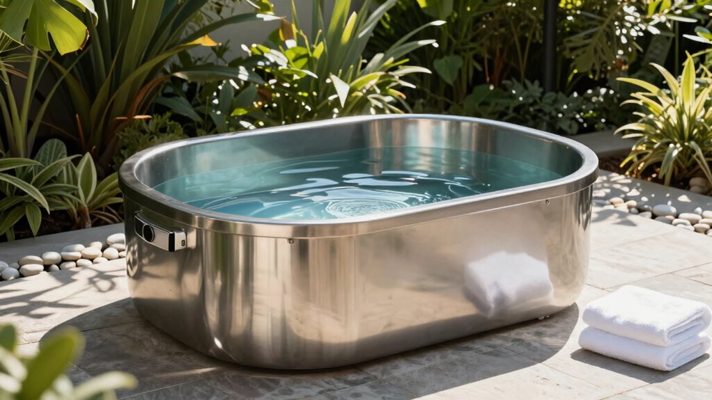 Oh, safety? Modern cold plunge tubs have got you covered like a cozy blanket. They feature slip-resistant surfaces, ensuring you don’t turn your chill session into a slip-and-slide disaster. Many include automatic shut-off systems if the water gets too cold or the pump malfunctions—because who wants to risk turning into a human popsicle? Plus, sturdy lids keep things secure when you’re not plunging, making safety feel like a built-in luxury.