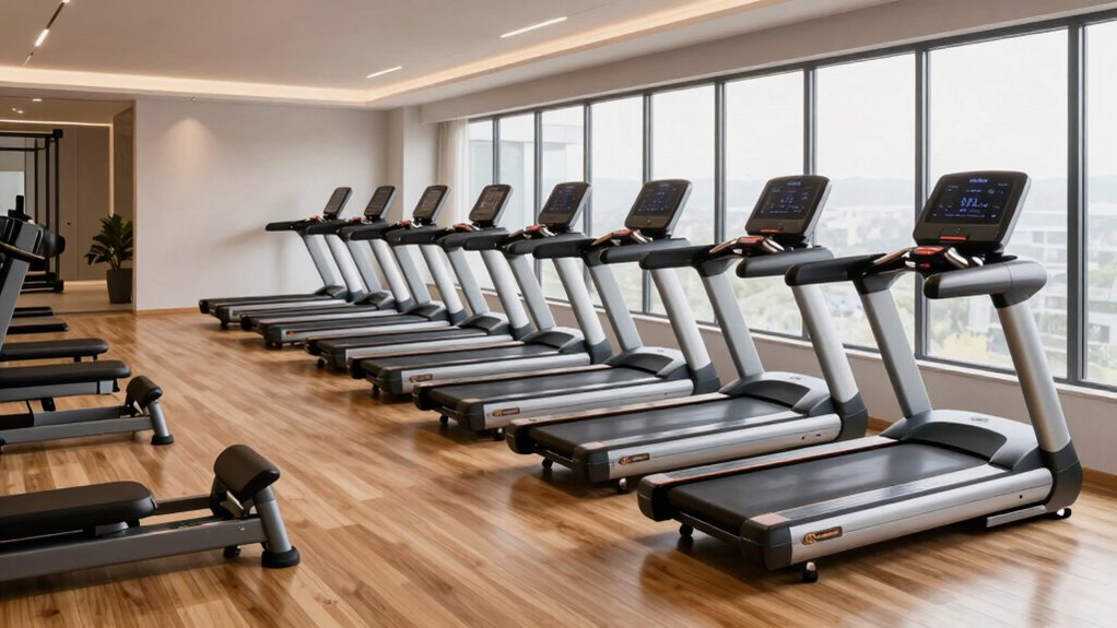 Absolutely, these treadmills are well-equipped for high-intensity interval training. I’ve found they handle quick speed changes and intense bursts effortlessly, thanks to their sturdy build and powerful motors. Their responsive controls make switching between intervals smooth, so I can push myself without worrying about stability or performance. If you’re serious about HIIT, these machines won’t disappoint—they’re designed to support your toughest workouts with ease.