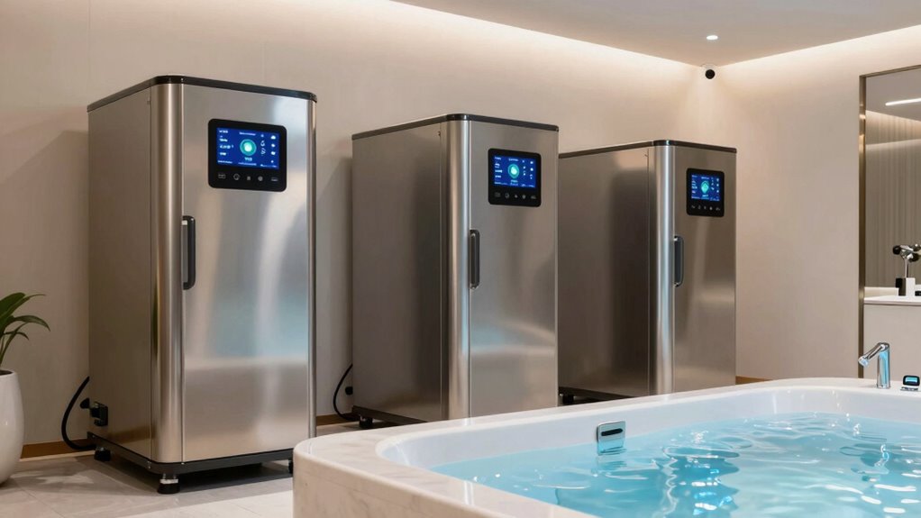So, there you have it—three chillers under $5000 that promise to keep your cold plunge icy. Ironically, while these options seem affordable and straightforward, the real challenge might be resisting the temptation to stay in that freezing water longer than you should. After all, the true test isn’t just choosing the right chiller, but whether you can handle the invigorating shock of cold therapy without turning into a human popsicle. Stay chill—literally.