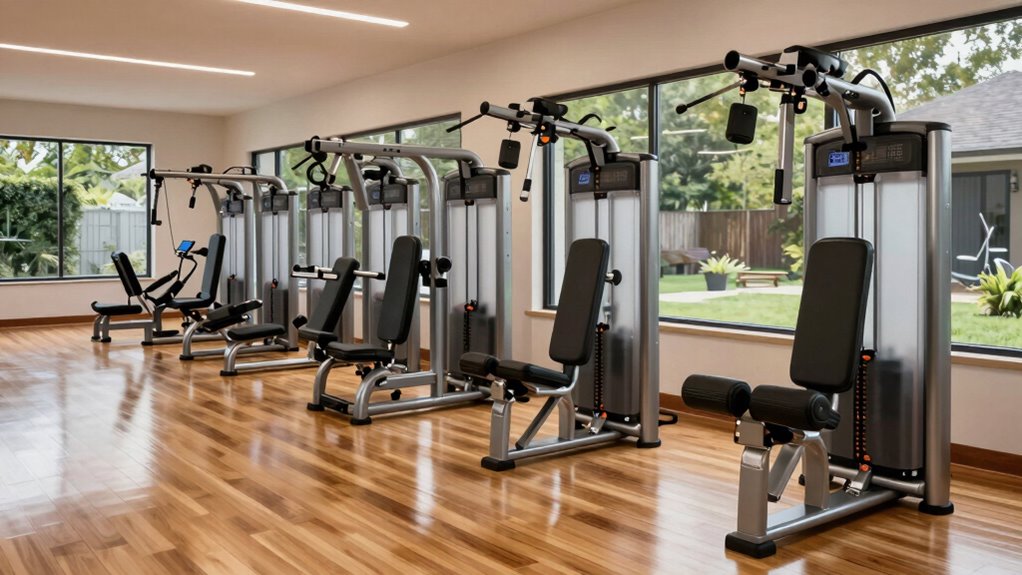 Adjustable resistance levels are essential because they let you tailor the workout intensity to your needs and goals. With multiple resistance settings, you can easily adapt the machine for beginners or advanced athletes, ensuring steady progress. As you gain strength, increasing the load becomes simple, supporting gradual muscle development. Precise resistance adjustments also help target specific muscle groups more effectively and reduce the risk of joint strain or injury. Different machines offer various methods for changing resistance, such as weight plates, resistance bands, or built-in mechanisms, giving you flexibility based on your preferences. Having a wide range of resistance options makes it easier to diversify your routines, whether you’re aiming for toning, hypertrophy, or maintenance, making your workouts more effective and safer.