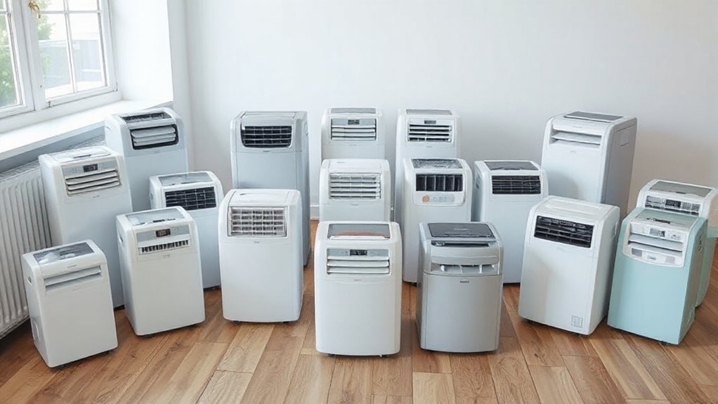 If you’re looking for the best portable air conditioners for 2026, I’ve got you covered. I’ve gathered top models like the BLACK+DECKER 8,000 BTU, Amazon Basics 3-in-1, Uthfy 8,000 BTU, and Dreo 10,000 BTU units, all with great features like smart controls, quiet operation, and easy setup. These units suit various room sizes and needs. Keep exploring to find out which one fits your space and lifestyle best.