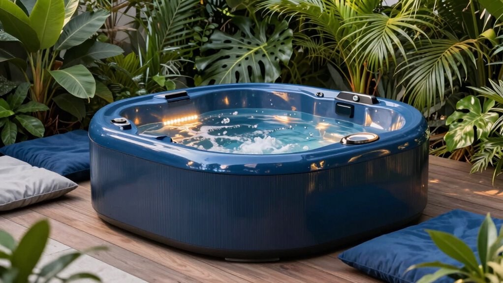 Adding the right features to your portable hot tub can considerably boost your relaxation and convenience. Built-in massage jets, LED lighting, and easy-to-use control panels create a spa-like experience right at home. Energy-efficient components like insulated covers and programmable timers help cut down on power bills, making your hot tub more economical. Safety features such as non-slip surfaces, overheating protection, and secure locking covers ensure safe use for everyone. Accessories like water filtration systems, cup holders, and side tables add practicality and comfort. For a modern touch, consider options like smartphone control and customizable massage settings, which personalize your experience. These additional features make your hot tub not only more enjoyable but also safer and more efficient.