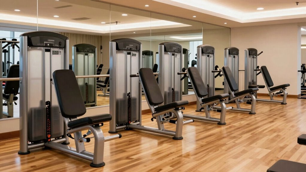 Maintaining your machine is like tending a delicate garden—consistency is key. I recommend regularly cleaning moving parts, lubricating hinges and pulleys, and checking for loose bolts. Wipe down the upholstery to prevent wear, and follow the manufacturer’s maintenance schedule. These simple steps keep it running smoothly, just like a well-oiled machine, ensuring your investment lasts for years and your workouts stay effective.
