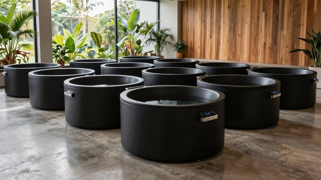 Have you ever wondered how some cold plunge tubs keep their water icy for hours while others quickly warm up? The secret lies in insulation effectiveness. High-quality tubs use multiple layers and materials like pearl cotton, waterproof coatings, and reflective covers to minimize heat transfer. These features help maintain cold temperatures longer, often up to several hours, reducing the need for frequent ice or chiller use. Many premium models are rated to retain 95% or more of their initial cold temperature, making recovery sessions more efficient and cost-effective. A specialized insulated or spaceship cover can markedly cut down on temperature loss. When choosing a tub, consider insulation performance as a key factor—it directly impacts your energy use, convenience, and the quality of your cold immersion experience.