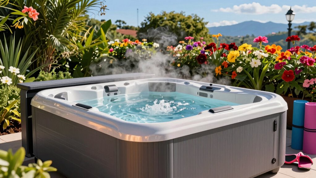 Think of my hot tub as a trusted teammate, always ready for a quick refresh. I find it easy to keep it hygienic—just regular draining, cleaning, and using the right sanitizers. I use quick-acting disinfectants and maintain proper pH levels, ensuring it’s safe after each workout. With simple routines, I keep my hot tub sparkling and ready, so I can unwind knowing my hygiene is always protected.