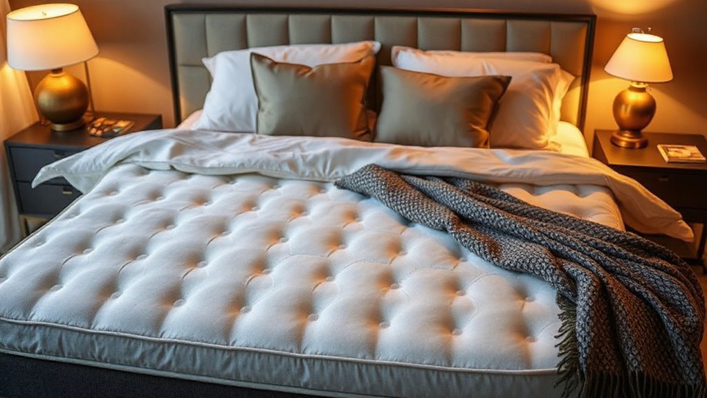 If you’re looking for the best temperature-controlled mattress pads under $3000 in 2026, I’ve found top options that combine safety, comfort, and energy efficiency. Many feature dual zones, multiple heat settings, and automatic shutoff for safety. Brands like Serta, MASVIS, Bearhug, and Bedsure offer models with advanced heating technology, waterproof fabrics, and easy maintenance. Keep watching, and I’ll show you how to choose the perfect one for your needs.