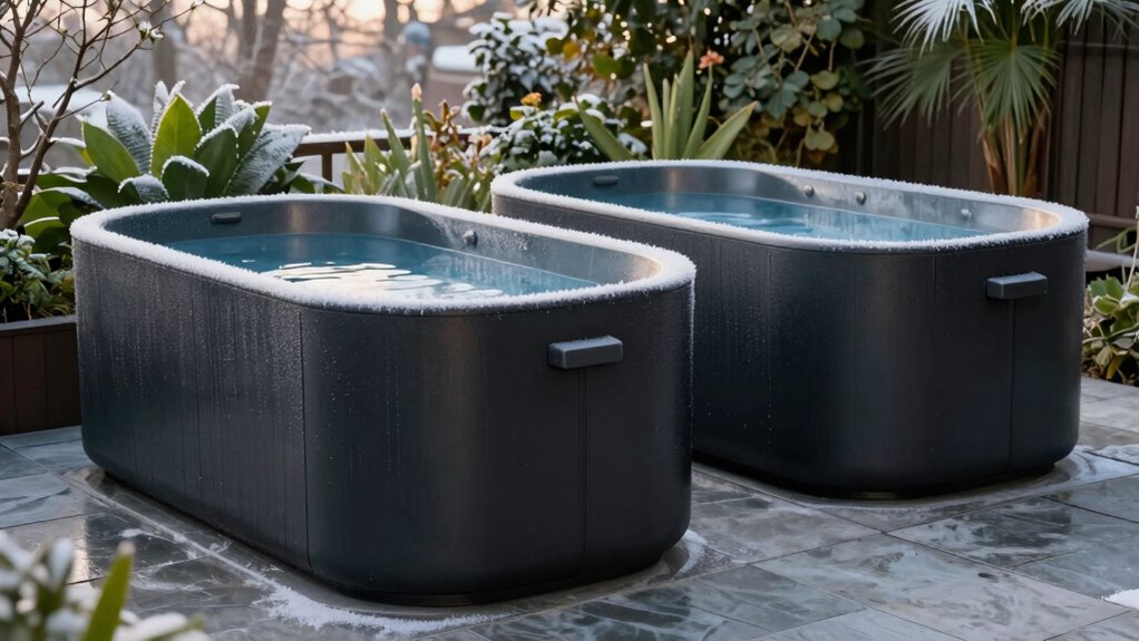 When space is limited or portability is a priority, how easy it is to move and store a two-person cold plunge tub becomes a critical factor. Lightweight inflatable tubs with carrying bags are ideal for this, as they’re easy to transport and fit into small spaces. Foldable models can be quickly collapsed in under a minute, making storage effortless. Durable materials like nylon, PVC, or fiberglass support portability without sacrificing stability. Some tubs feature integrated wheels or handles, which make moving them a breeze. Additionally, multi-layer insulation and covers help retain water temperature during storage, reducing setup time for future use. Overall, choosing a tub designed for easy transport and compact storage enhances convenience and flexibility.