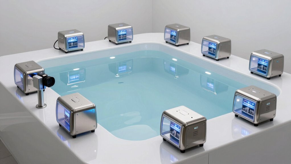 UV sterilizers are highly effective at reducing most waterborne pathogens in cold plunge pools, including bacteria and viruses. However, no sterilizer can eliminate all types of microorganisms completely. I recommend using UV sterilization as part of a thorough water treatment plan, including proper filtration and chemical disinfection, to guarantee your cold plunge remains safe and clean. Regular maintenance and monitoring also help maximize effectiveness.