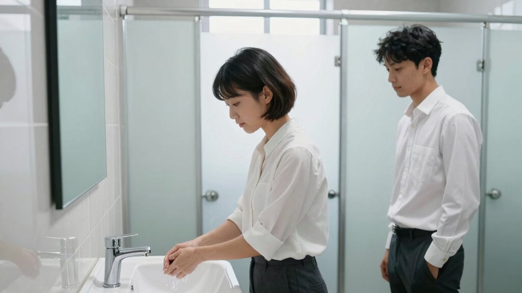 - Flush toilets and wash hands properly after use, disposing of hygiene products correctly.